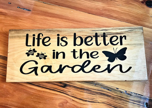 WOODEN Garden SIGN. Handmade. Bees. Garden life. wall décor. Glossy. cute. outside garden.
