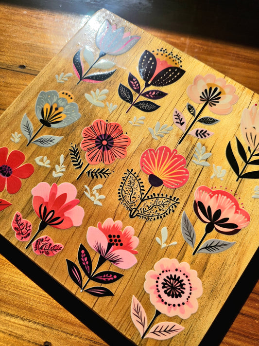 WOODEN FLORAL SIGN. Handmade. PLANTS. Scandinavian. wall décor. Glossy. cute. Plant room. bright colors.