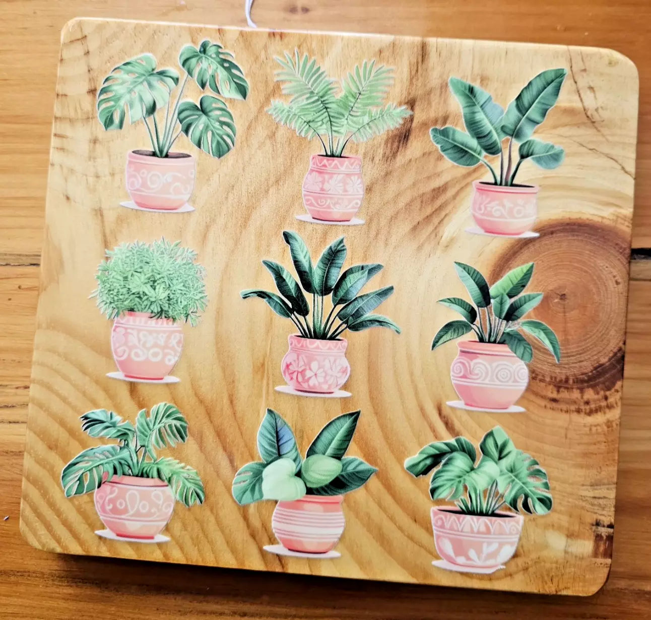 WOOD plant sign wall décor. Potted plants. Glossy. Trending. FLORAL